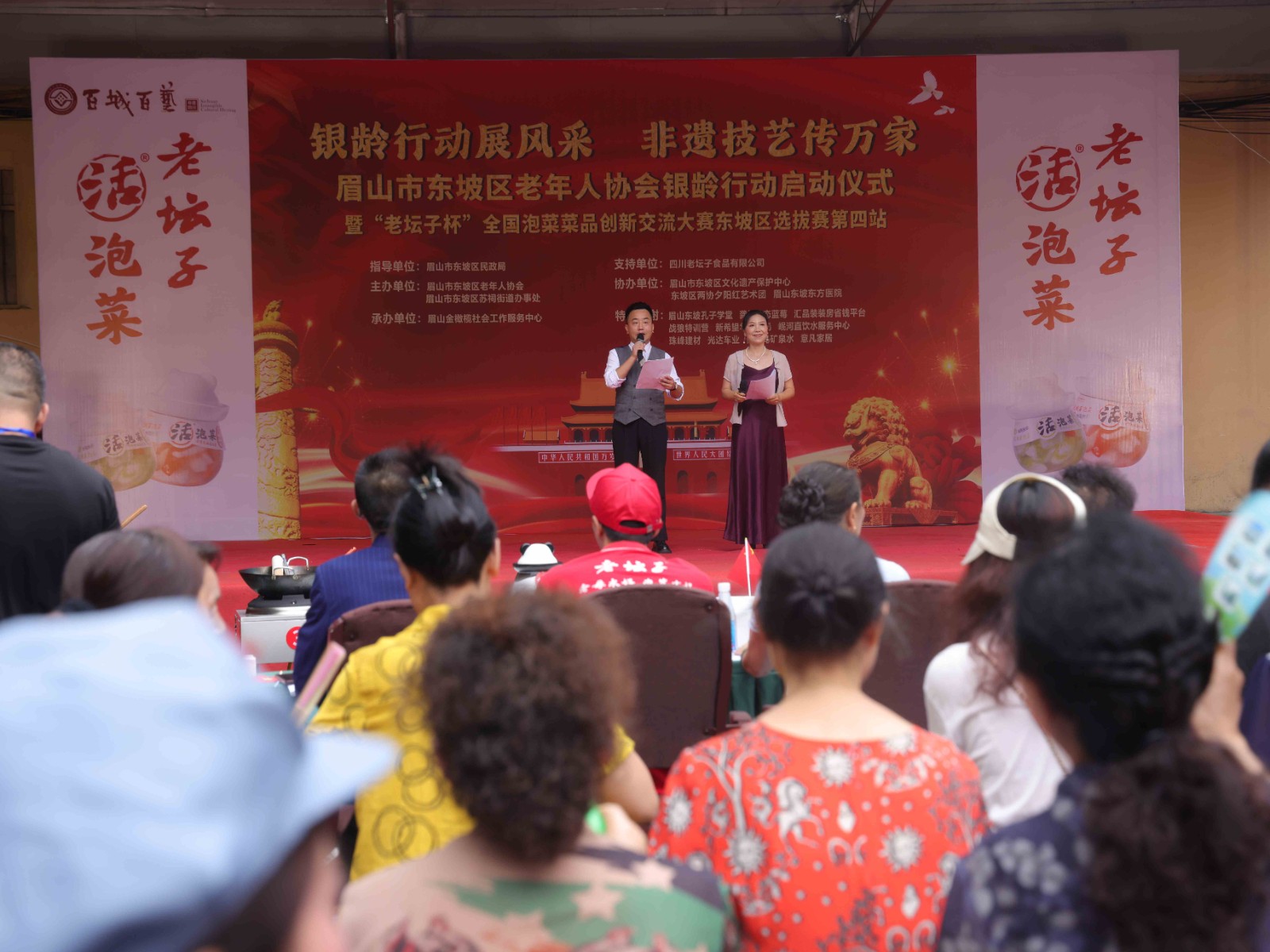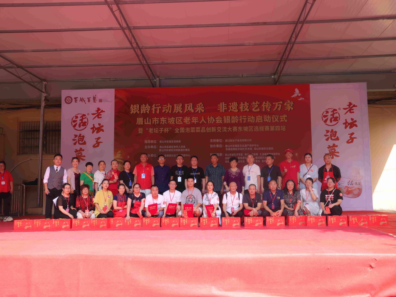在庆祝中国共产党建党104周年华诞的重要历史时刻,2025年7月1日,“银龄行动展风采,非遗技艺传万家——‘百城百艺’东坡泡菜文化进社区第四场暨老坛子杯全国泡菜菜品创新交流大赛东坡区选拔赛”在东坡区老年活动中心盛大启幕。本次活动以“红色引领+银龄赋能+非遗活化”的三维联动模式,创新性地实现了党建文化、老年教育和非遗传承的有机融合,为“非遗四川·百城百艺”四川非遗品牌的宣传推广起到了积极作用。