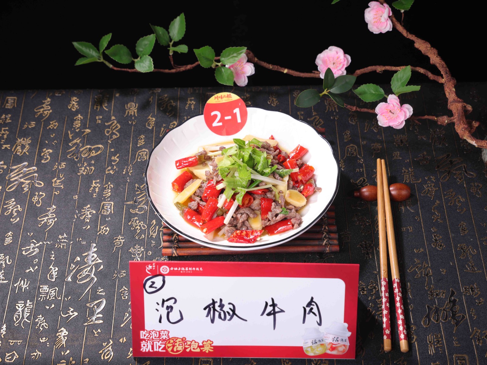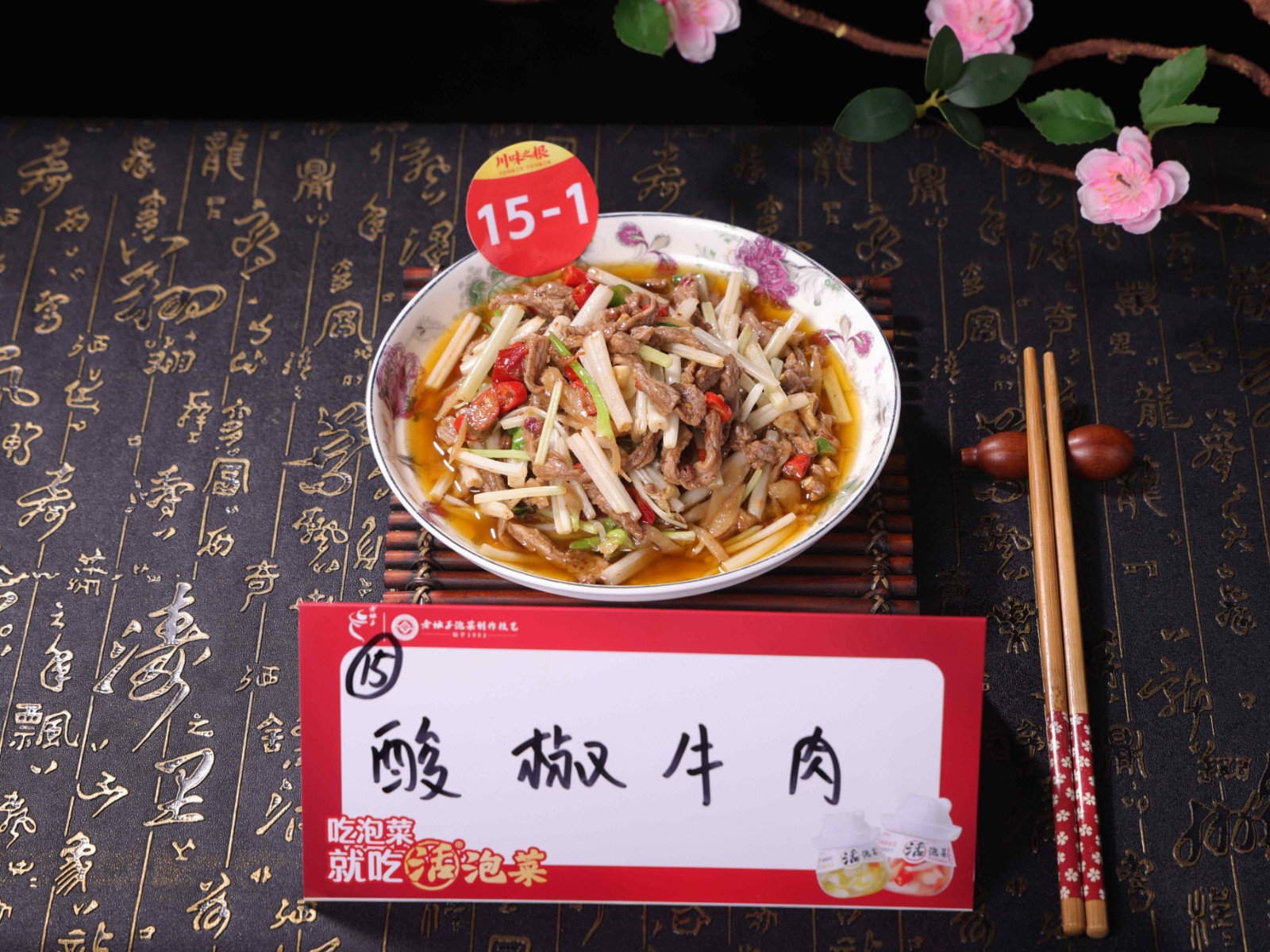 参赛选手以东坡泡菜为灵感展开创意比拼,展示了“泡椒牛肉”“泡椒牛蛙”等各具特色的菜品,现场评委从色、香、味、形多维度评分,前五名晋级2026年总决赛。活动同步设置活泡菜展示台,居民可亲尝非遗技艺的“活态”传承。