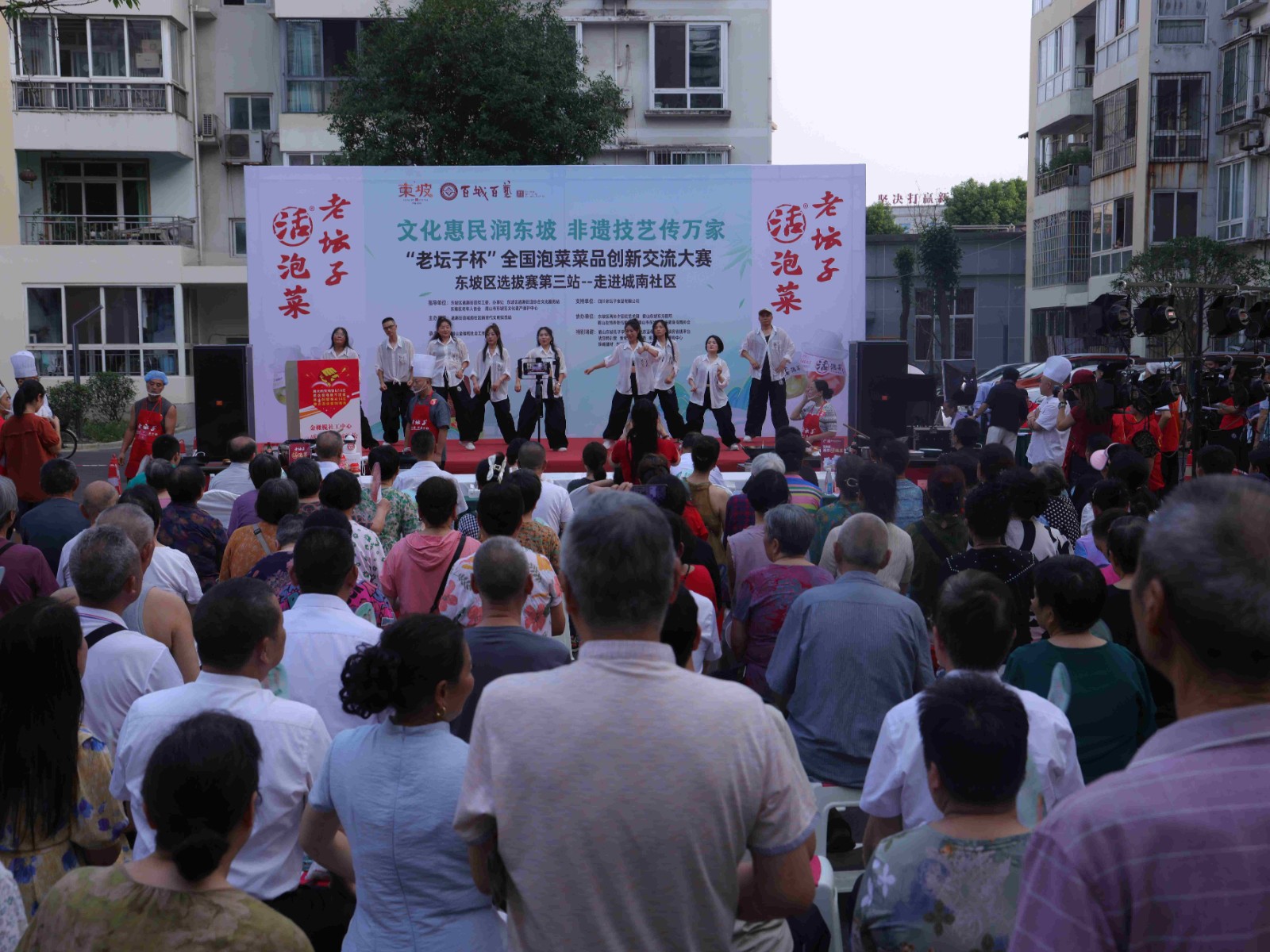 2025年6月27日,文化惠民润东坡,非遗技艺传万家——2025“百城百艺”东坡泡菜文化进社区暨第三届老坛子杯全国泡菜菜品创新交流大赛东坡区预选赛在城南社区沙坪馨苑小区隆重举行。本次活动结合东坡泡菜文化的传承与创新,以丰富多彩的表演和专业的比赛环节,集中展示了当地非遗技艺的独特魅力,同时也营造出浓厚的社区文化氛围。